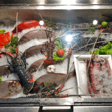 Full Fish, Jumbo Prawns, Tiger Prawns, Octopus, Calamari, Lobster, Crab, Oyster.